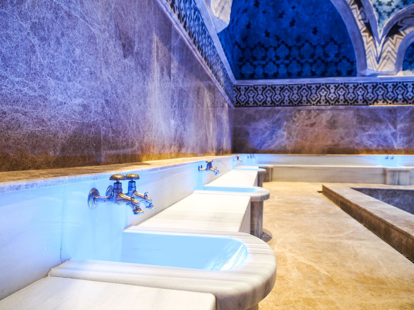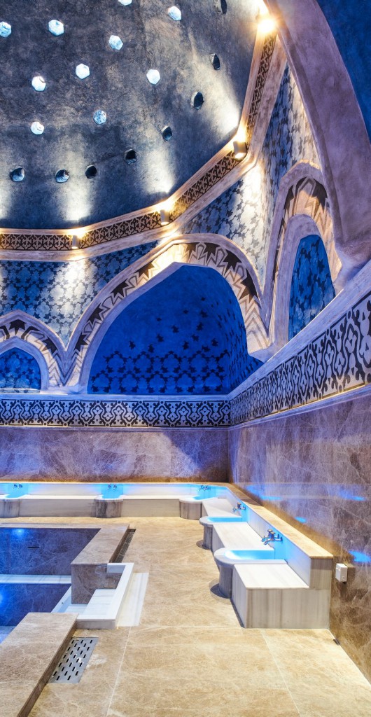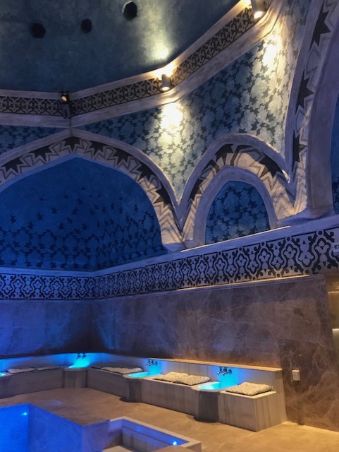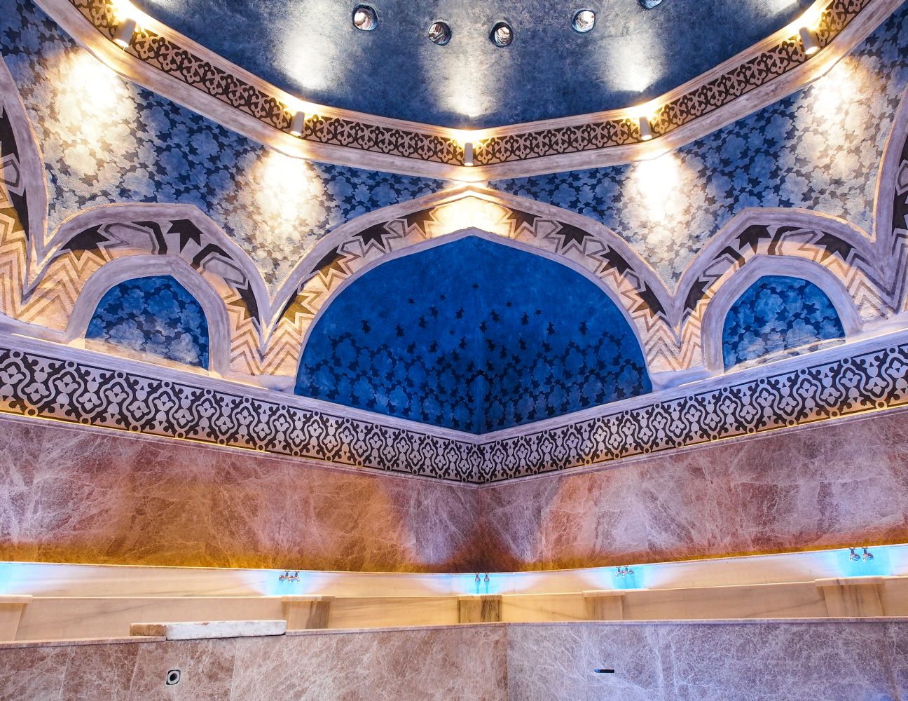 Най-интеренсата част от посещението на Аква Калиде е банята на султана. Тя е напълно въстановена в много красиви ориенталски плочки, изцяло в красива тъмно- синя цветова гама. Стенописите са изключително красиви в стил на османската империя 15-16 век.