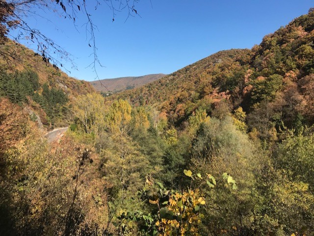 Връщайки се надолу по лъкатушещата се пътека, успях да зърна през клоните на дърветата прекрасната есенна картина на Лозенската планина от другата страна на Искър.