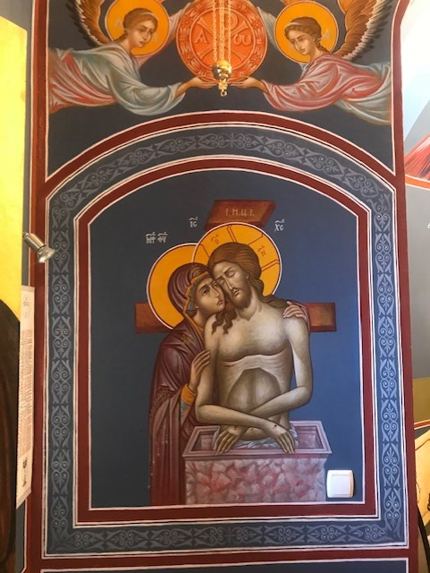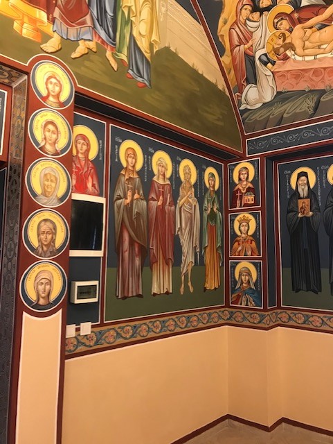 С влизането ми в манастирската обител се запознах с мило семейство, което помагаше за градинарската работа на единствената монахиня, обитаваща църковния имот. Имах удоволствието да се запозная с нея, с присъща скромност на посветен на вярата човек, тя пожела да остане анонимна, но ми отдели време за да ми покаже току-що завършените стенописи в църквата от софийски стенописец. Разговорът прерастна скоро в дълга беседа за житието на много от светците, изобразени по стените, както и за чудесата съпътвствали тяхното битие. Църквата блестеше празнично в прясно изографисани стени, с ярки цветове, осветени празнично от полюлеите. Въпреки скромния си размер, църквата беше успяла да приюти по стените и таваните си забележително много образи на светци, в цял ръст, само лица, във фигурални композиции беше изографисан целия таван и арковото пространство над стените.