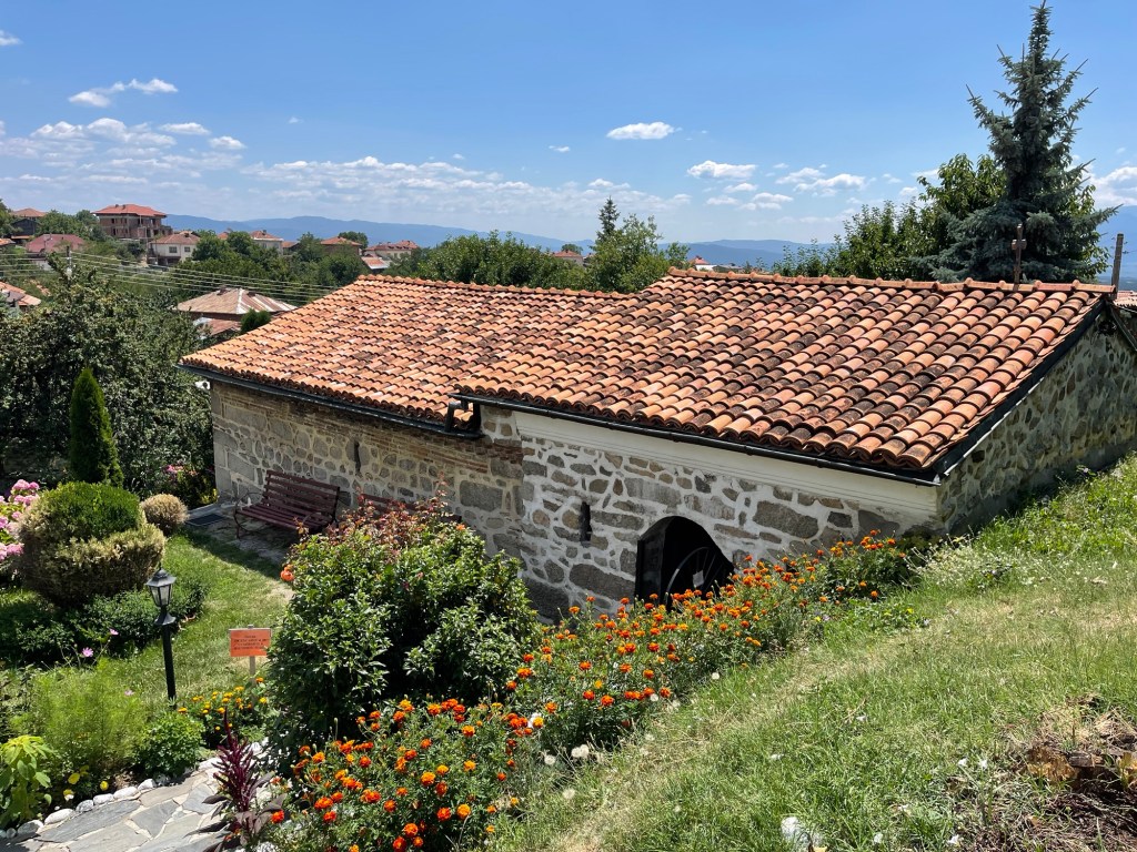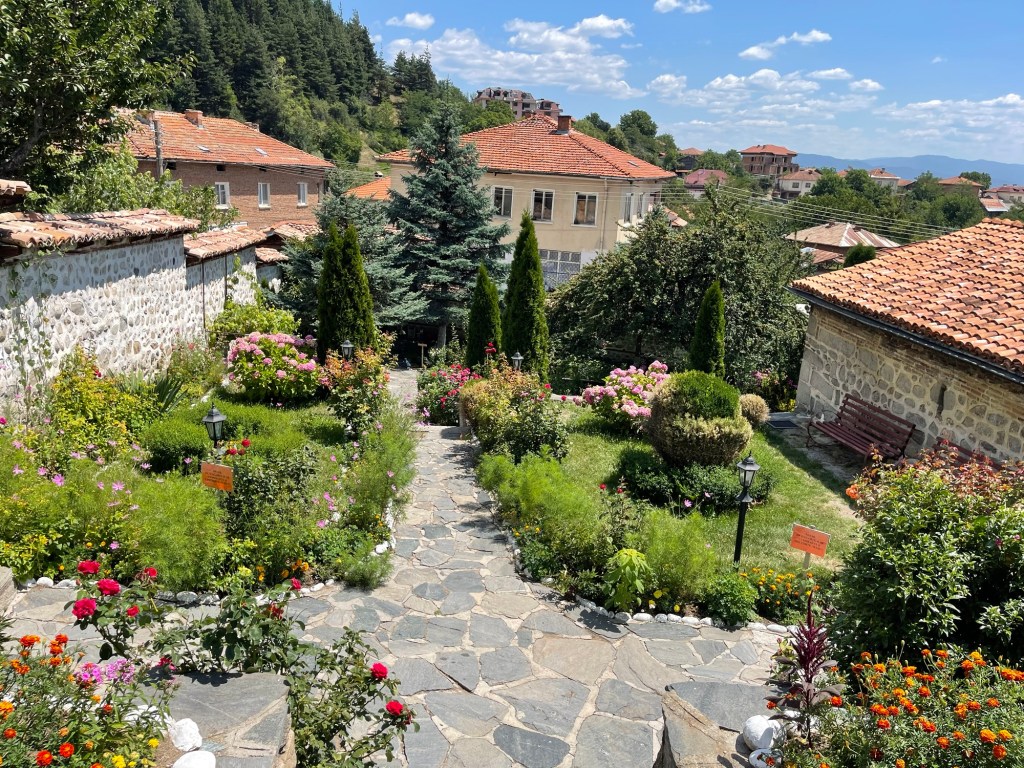 Безупречно поддържан двор грижливо обгръщаше тази историческа светиня, пристан за вярващи от почти хилядолетие! Миризмата на рози запълваше пространството и зеленината подсилваше идиличната картина. В двора на видно място има паметна плоча, която пази паметта на падналите в борбата с фашизма местни хора.