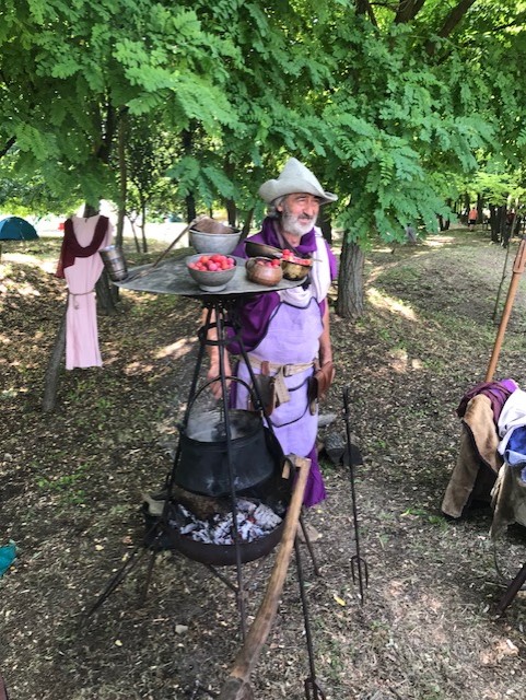 С много любов и ентусиазъм ни посрещна майстор-готвач Петър Стефанов от клуб „Традиция“, който по древна римска рецепта раздаваше сготвена от него ‘варварска“супа от булгур, леща, моркови, лук и сливи на всички които имаха кулинарното любопитство да я пробват. Ние повторихме дори и понеже той я раздаваше безвъзмездно, му се отплатихме за вкусното изкушение с кафе от автомата наблизо:) Размяната беше повече от успешна: завърши с много усмивки и споделяне на „тайната“ древна рецепта от негова страна за наше голямо удоволствие.