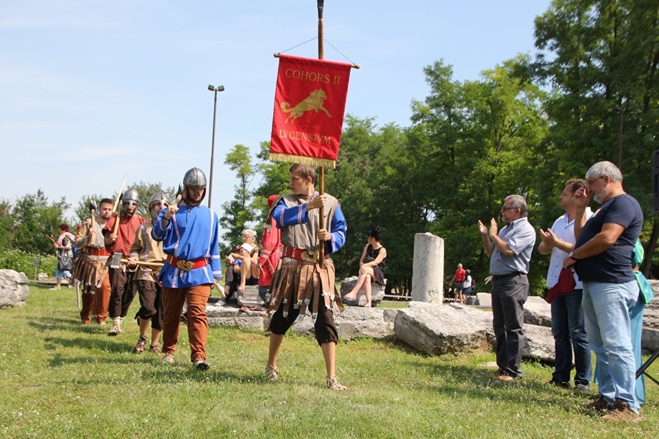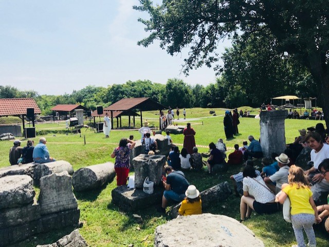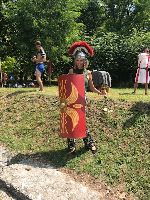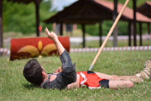 Млади гладиатори ни демонстрираха бойните си умения с доспехи под горещите лъчи на следобедното слънце. Малък римски легион от любители-ентусиасти показаха завидни умения на смели римски пехотинци под заповедите на латински език от техния пълководец. Впечатляващи бяха одеждите на всички участници, които те признаха не са лично направени, а се купуват от специализирани фирмени магазини за тематично облекло. В късният следобяд по програма имаше конкурс за най-добър костюм от епохата за посетителите, който за съжаление ние пропуснахме. Успяхме за малко обаче да се превъплътим в доспехите на римски пехотинец…за наша радост те бяха бутафорни, иначе младежите ни уведомиха, че нормално тежат над 30 кг.. Празненството завърши по програма с музикални изпълнения на две вокални формации Ксана и Фрея. Музиката от шлемовете и дрънченето на бойните доспехи кънтеше дълго в нас до края на дена, пътувайки към дома.