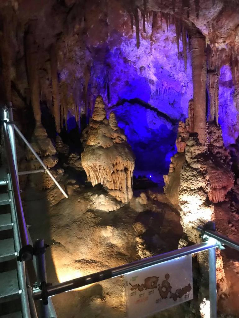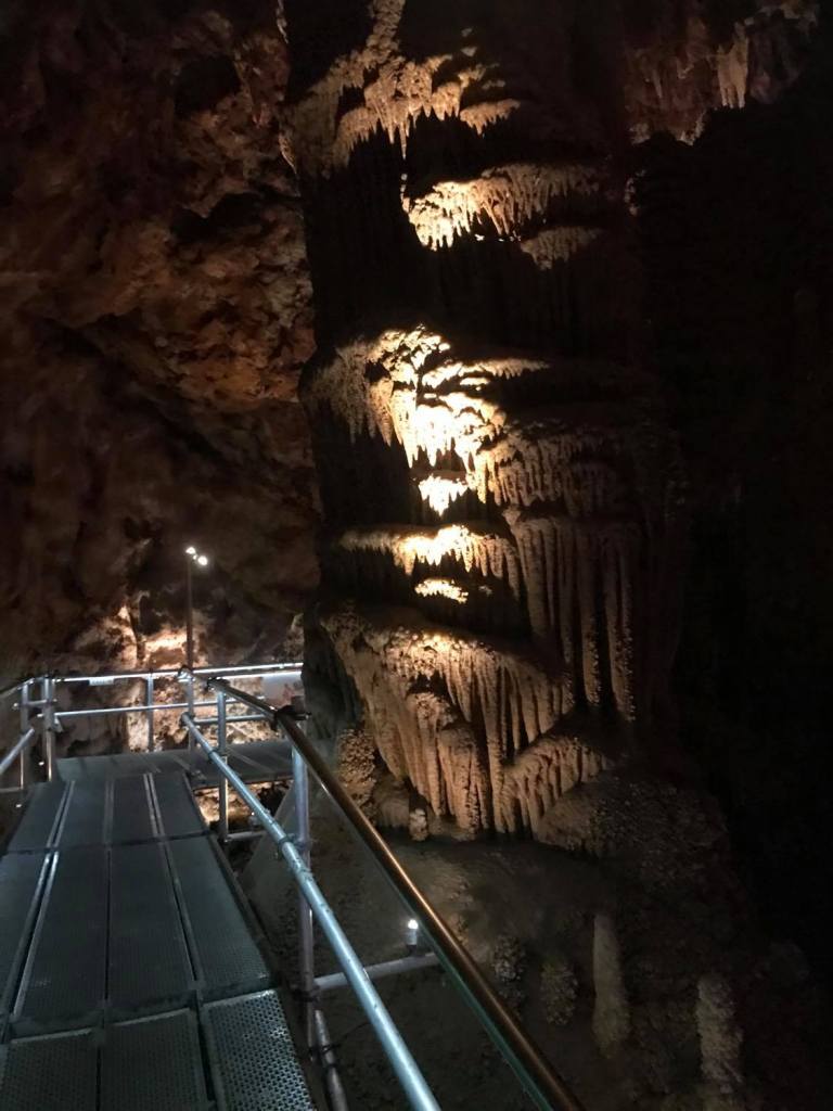 Пристигам малко преди 17:00 ч., когато е последната обиколка с гид. По традиция в пещерата се влиза на всеки кръгъл час, така, че имам достатъчно време да прочета изложената информация и да сложа каската, която ми се полага за разходката вътре. Минути преди самия тур се събираме една колоритна група от различни възрасти и всички оборудвани тръгваме по стръмна и скосена стълба към низините на пещерата след нашия гид.