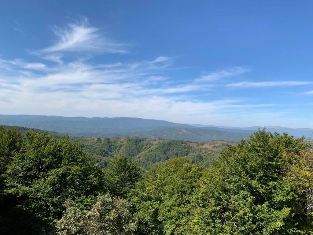 След като напуснах манастира, продължих по добре маркираната пътека, която разбрах е обозначена наскоро от Трънското туристическо дружество за всеобщо улеснение на любителите на планината. Преходът към върха е повече от приятен и в по-голямата си част е на открито. Минава се през заслон, доста занемарен, от който се тръгва за другото село в региона Душинци. От заслона се стига до върха за по-малко от 30 минути. Големият връх е гол и предлага гледка 360 градусова панорама, която спира дъха с простора на хоризонта, който открива. Виждат се Витоша, Рила, Осогово, Руй, Стара планина, а познавачи твърдят, че могат да разпознаят около 30 отделни планини от височината на върха.