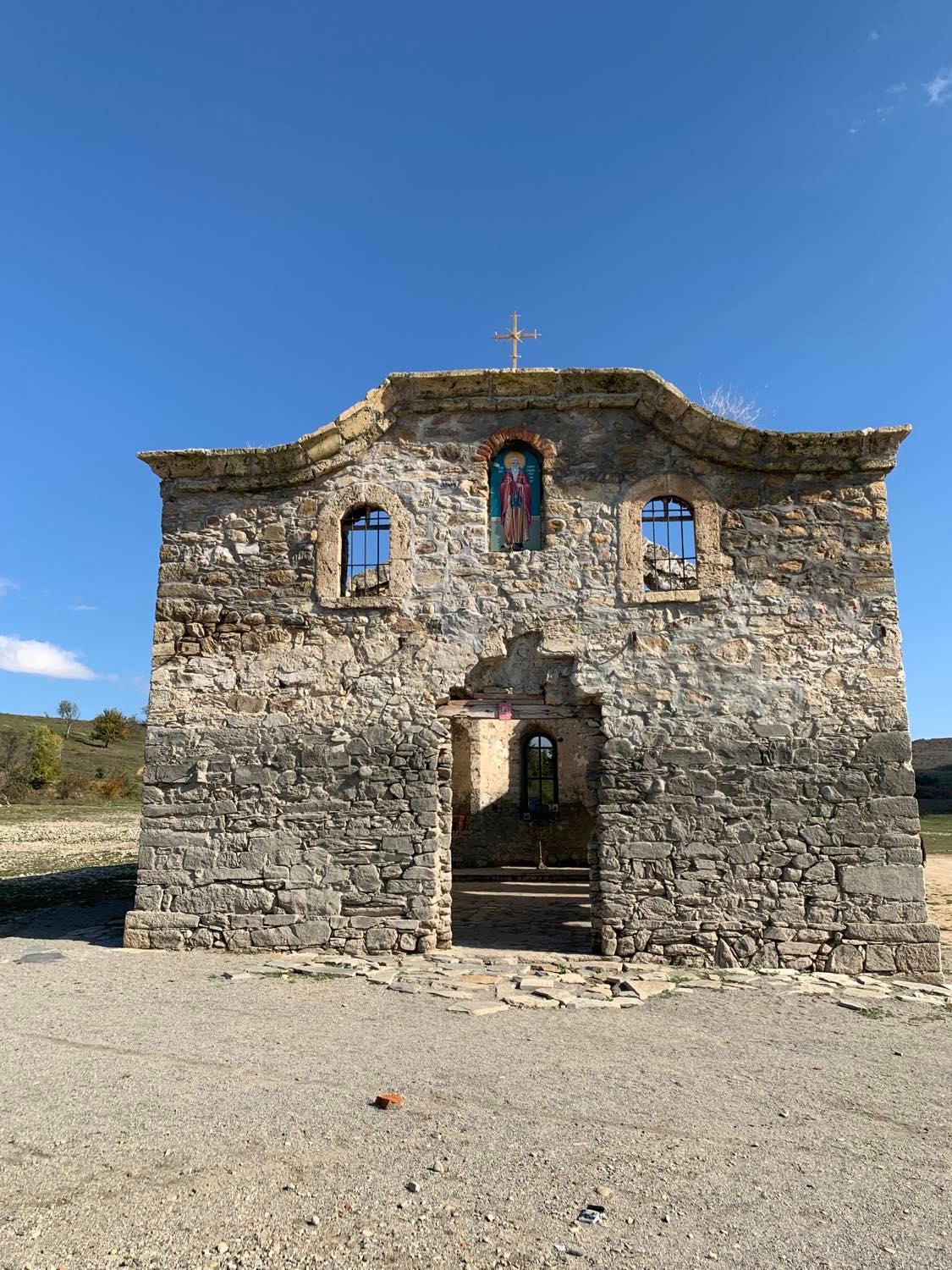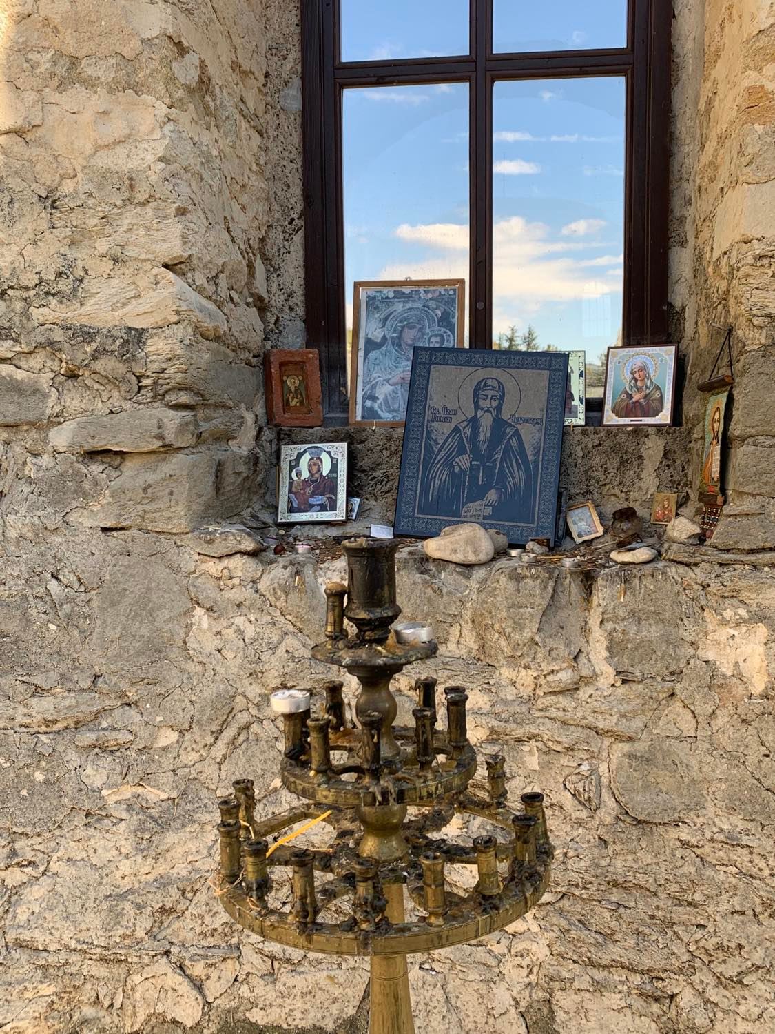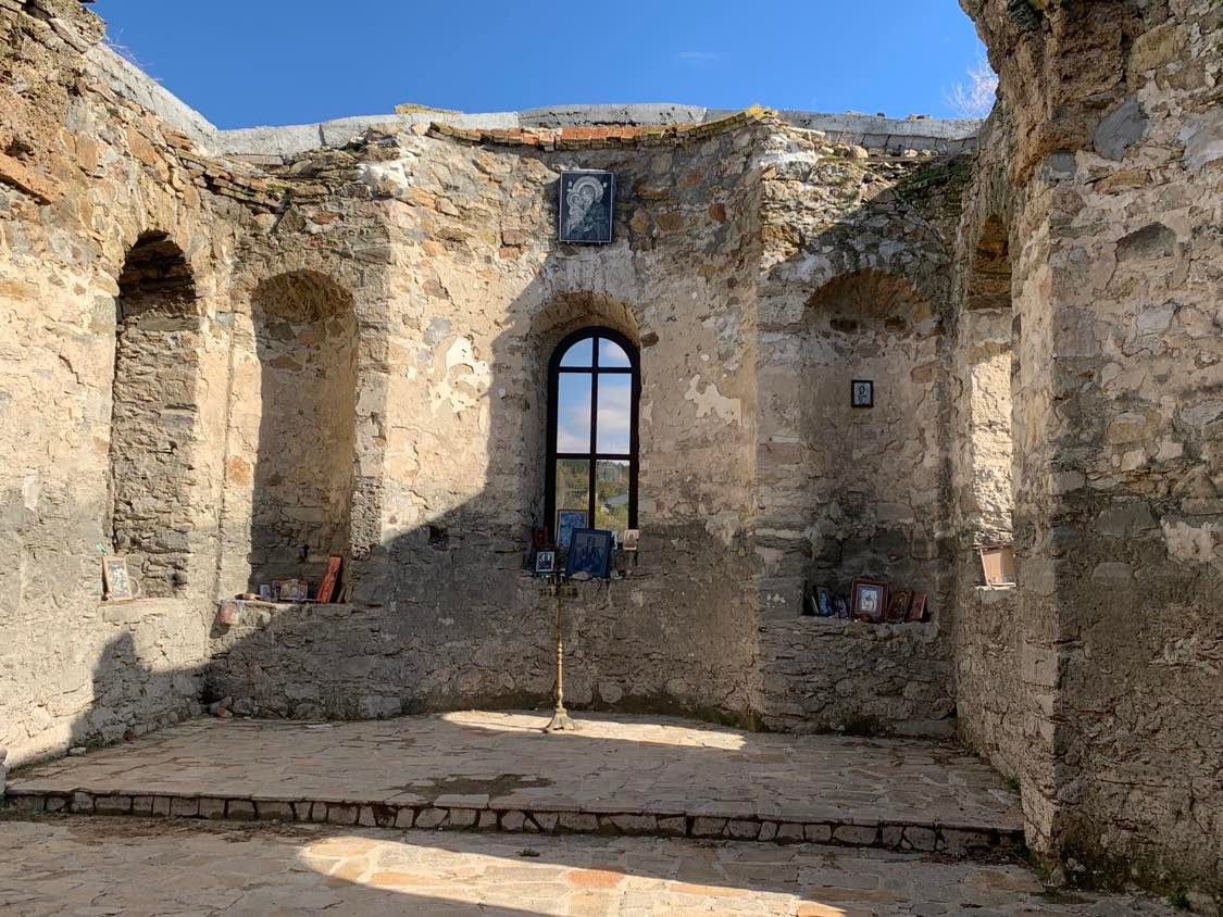 Съдейки по поставеният свещник с полуизгорели свещи и няколкото икони поставени до прозореца на импровизирания олтар, църквата продължаваше своя живот като храм. Въпреки липсвашите врати и покрив,усещането беше много интимно и проникновено.