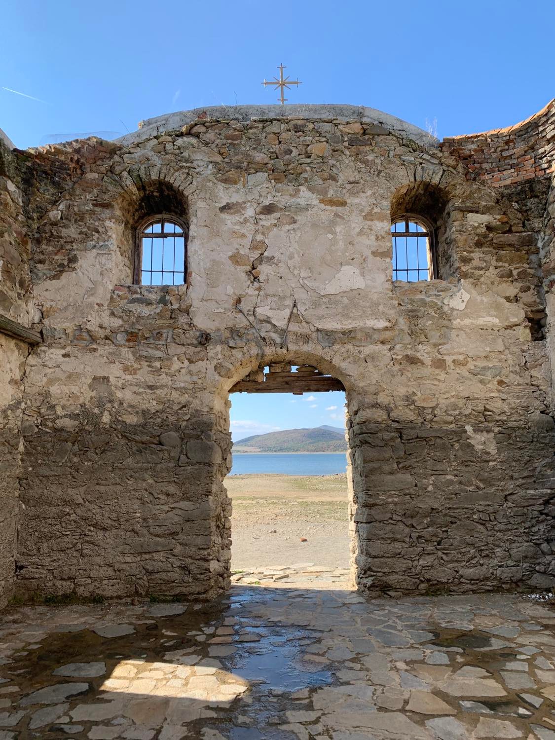Поради оттеглянето на водата през сухите летни месеци, пространството около църквата беше започнало да се покрива дори с трева. През пълноводните месеци, разбрах, че църквата се посещава и с …лодка!