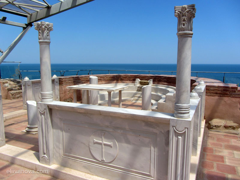 Макар само част от базиликата да е възстановена – няколко колони, част от олтара и олтарната маса ,може да се придобие представа как е изглеждало мястото в древността.Откритата от екипа на доц. Валери Йотов мраморна олтарна маса е сред най-добрите образци на епохата, и то не само от нашите земи. Красив светилник, глинени и бронзови лампи, монети, най-разнообразни артефакти – многобройни са находките през десетте години на проучванията. Особено ценни са фрагментите от живописна украса, сред които е обичаният в онази епоха образ на „младия Исус“. Открити са и надписи на латински с имената „Исус“ и „Мария“, както онази епоха е обозначавана Света Богородица. От базиликата се открива красива гледка от ръба на нос Свети Атанас.