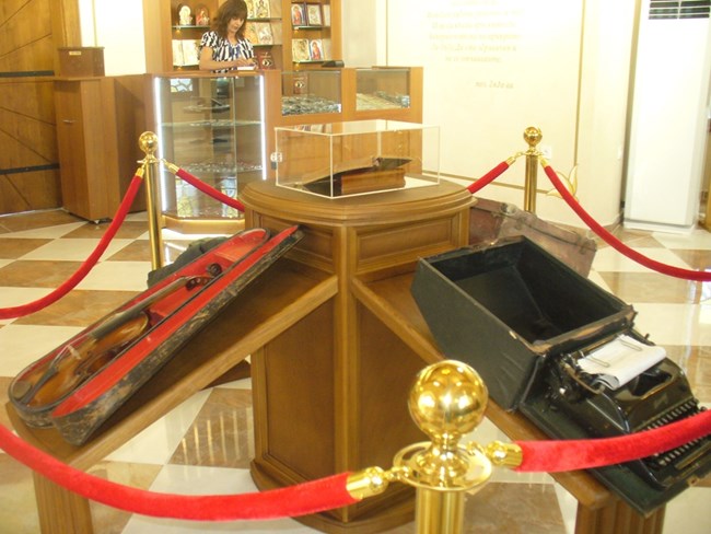 Лични вещи на дядо Влайчо-любимата му цигулка, с която е изпълнявал музика за паневритмията и печатната му машина, на която е писал поезия