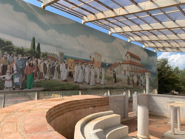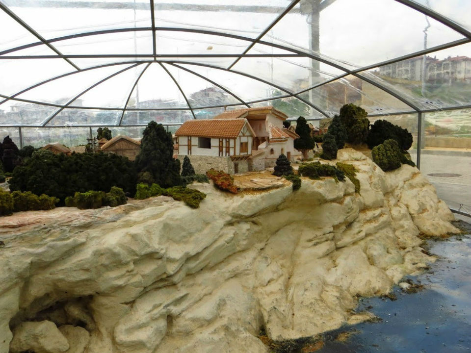Пред главния вход има голям макет на селището, покрит под пластмасов овален купол.