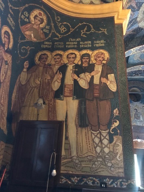 Църквата е призната от ЮНЕСКО като паметник на безценното духовно изкуство. Единствено в тази църква на южната стена са изографисани две българки и петима българи, облечени в носии от ХVIII, които държат в ръцете си православни кръстове. Освен мозаичните фрески, другото с което параклисът е уникален и единствен по рода си са светци изобразени в народни носии!